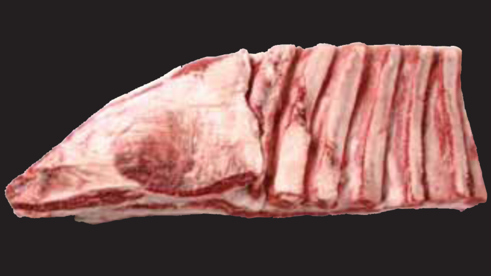 牛の腹にあたる部分の「ともばら」を中央から2分割した下側が「そとばら」です。「うちばら」と同じように、きめが粗く、しかし濃厚な味わいが特徴です。「そとばら」には「フランク(ささにく)」と呼ばれる、赤身と脂肪が適度に交雑した部分があります。