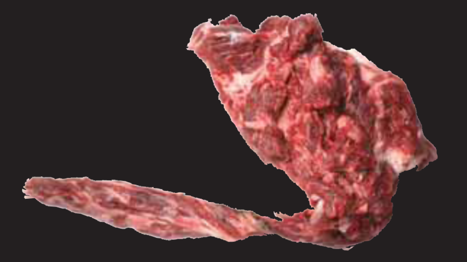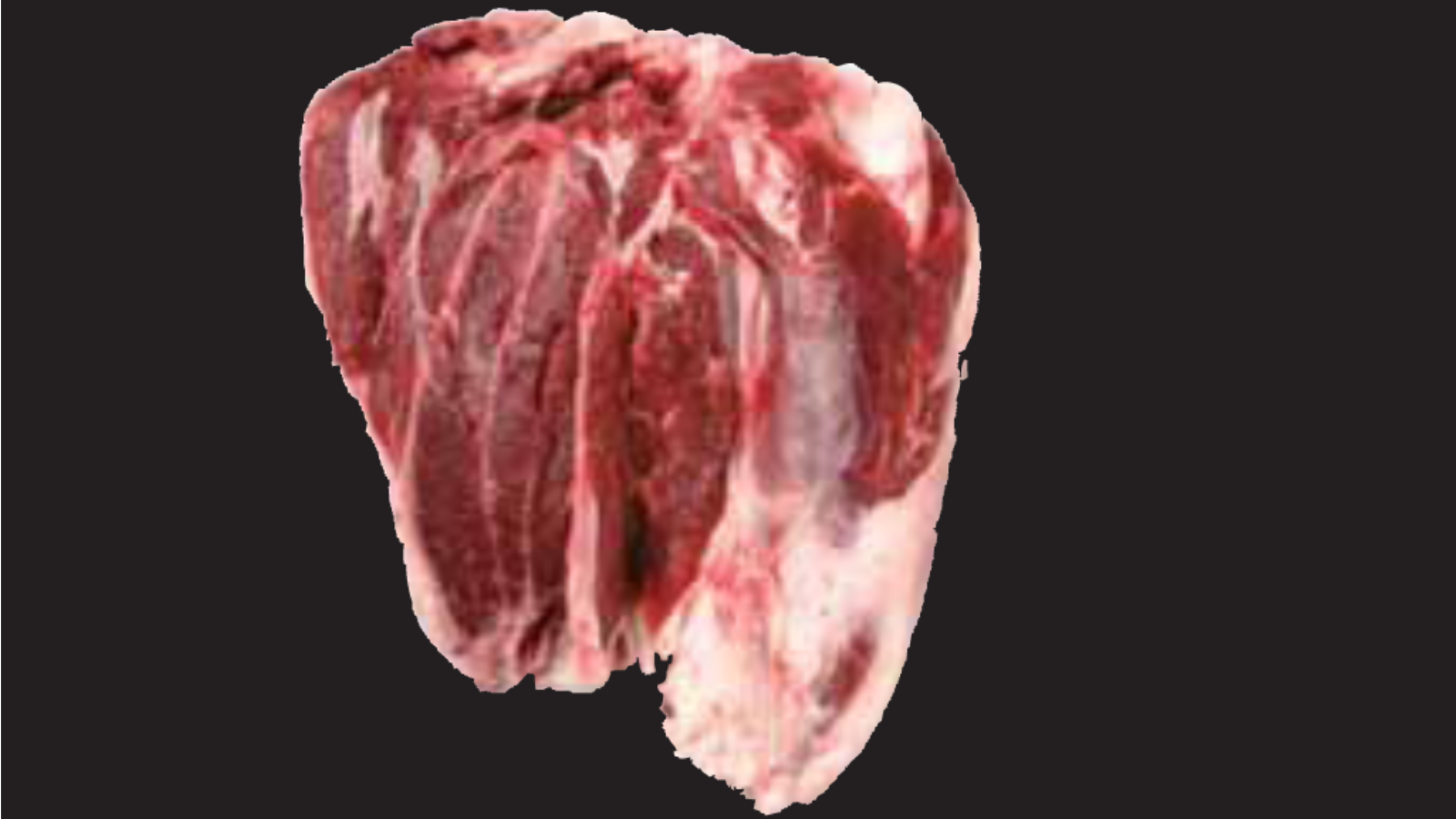 「ネック」はよく運動する首の部分で、肉質はきめが粗くて硬く、赤身の多い部分です。また筋が多く入り込んでいるため、煮込み料理には最適です。他の部分と混ぜて、挽き肉や細切れにしてもおいしい部分です。