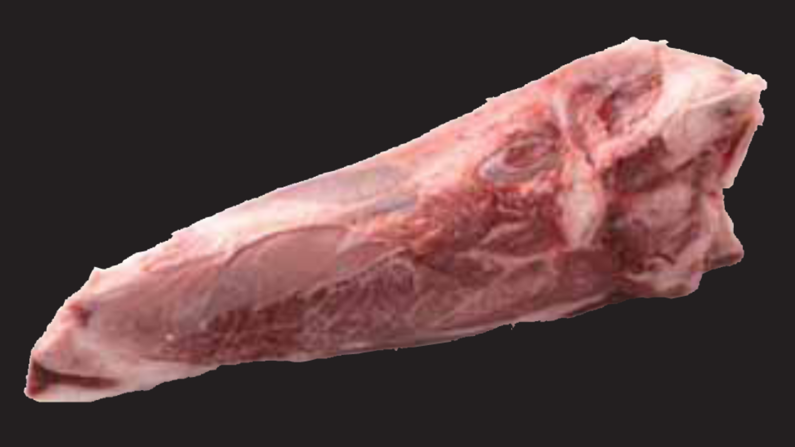 「まえすね」はよく運動している部分なので筋が多く、赤身です。一般的にミンチ材料または切り落としとして提供できます。尚、「まえすね」は「すね本体」と「こまくら」に分割できます。「ともすね」はよく運動している部分なので筋が多く、赤身です。