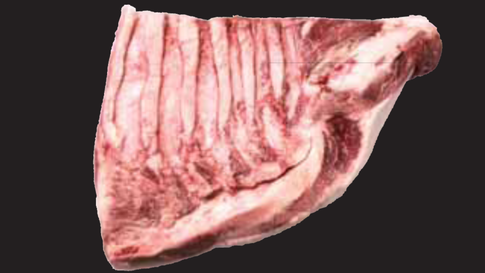 牛の腹にあたる部分の「ともばら」を中央から2分割した下側が「そとばら」です。「うちばら」と同じように、きめが粗く、しかし濃厚な味わいが特徴です。「そとばら」には「フランク(ささにく)」と呼ばれる、赤身と脂肪が適度に交雑した部分があります。